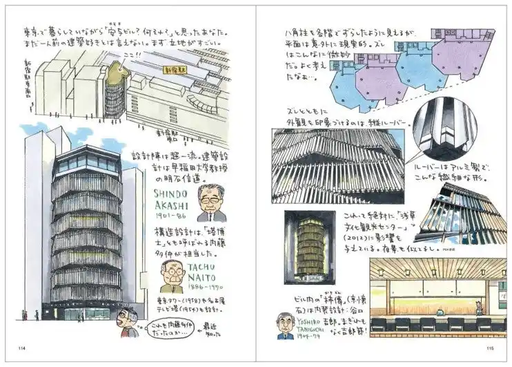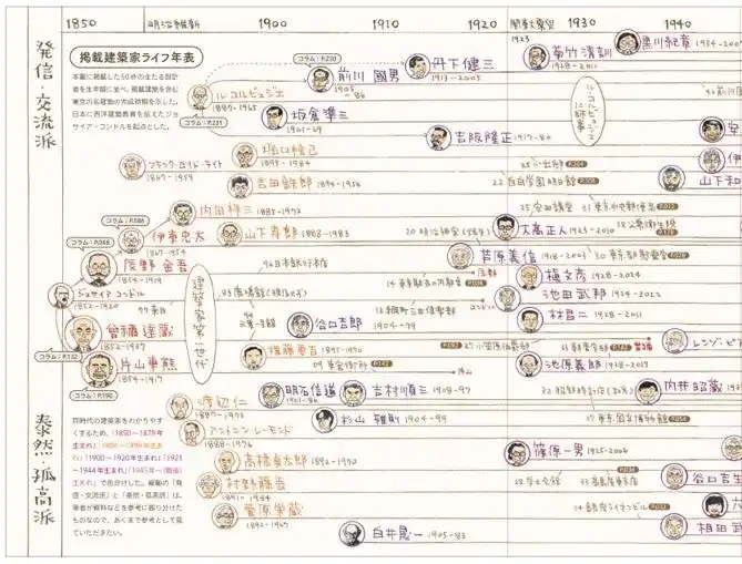 特定の建築家に偏らず、一人の建築家につき一つの建築に絞って紹介しています。本文で建築家にもスポットを当て解説することはもちろん、イラストルポでは50人の似顔絵を掲載。推しの建築家が見つかるでしょう。 |