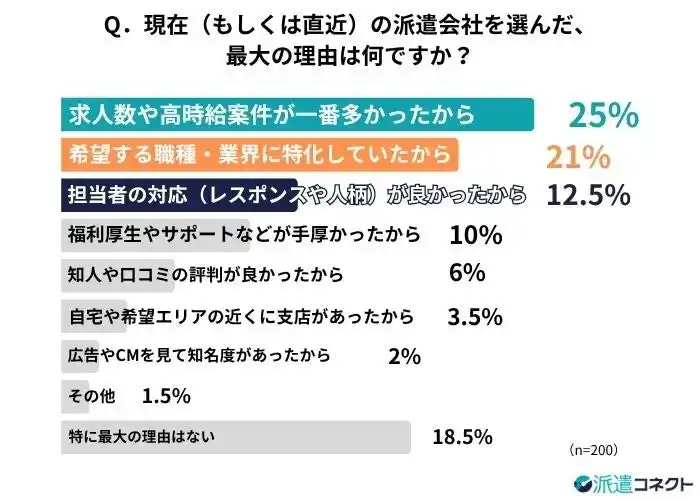 | 決め手は求人数、継続は人的サポート。派遣社員が「次選ぶときは重視したい」と考える、長く働ける派遣会社の条件とは |