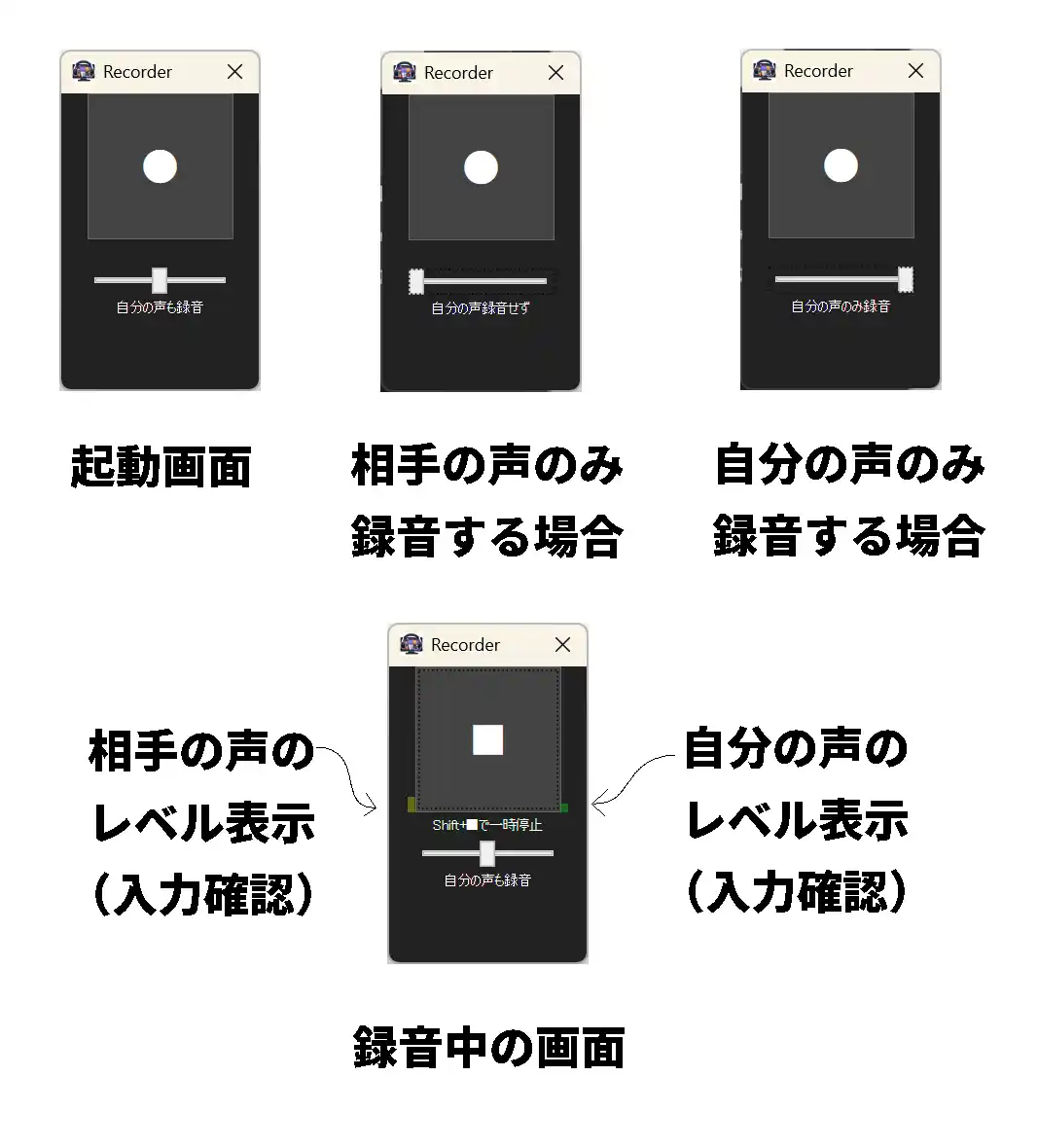 録音モードは「両者の声」「相手の声のみ」「自分の声のみ」の3通りから選択可能です。 |