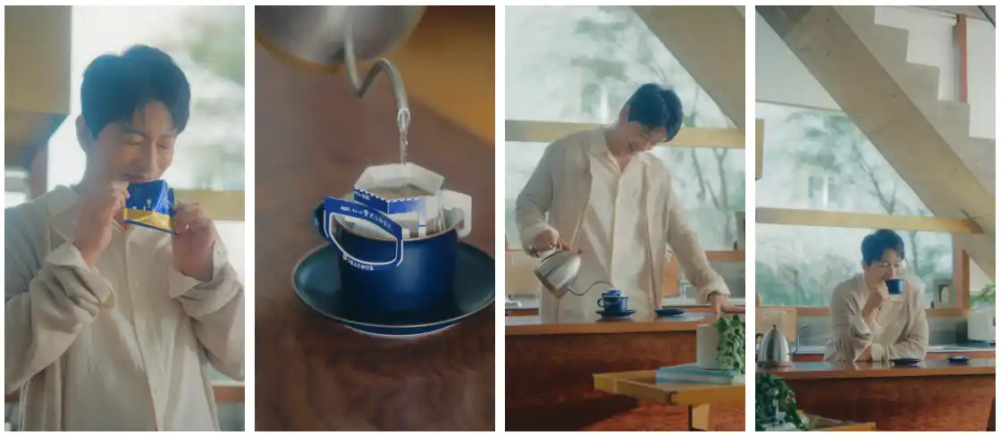 昨年、大沢たかおさんが出演し、SNSでも大きな反響を呼んだ特別企画『魅力体感シリーズ』より新作動画を2本公開します。新WEB動画『道具は、いらない』篇と『いま飲みたい』篇では、大沢さんが1杯の珈琲を丁寧に淹れる所作を通じて、道具がなくても本格的なハンドドリップを愉しめる手軽さと、開封した瞬間から立ち上る豊かな香りを味わえる商品の魅力を描いています。「ちょっと贅沢な珈琲店(R)」 プレミアムドリップは、「珈琲を、こころに。」というブランドメッセージのもと、忙しない日常の中でも手軽に本格的な珈琲体験を愉しめる提案を通じて、より多くの方に心満たされるひとときをお届けしてまいります。 |