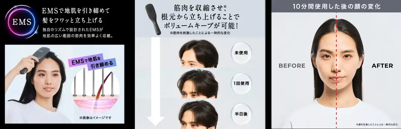 理想のスタイリングは“髪の立ち上がり”でキマる。331本のピンヘッドから流れるEMSが、 |