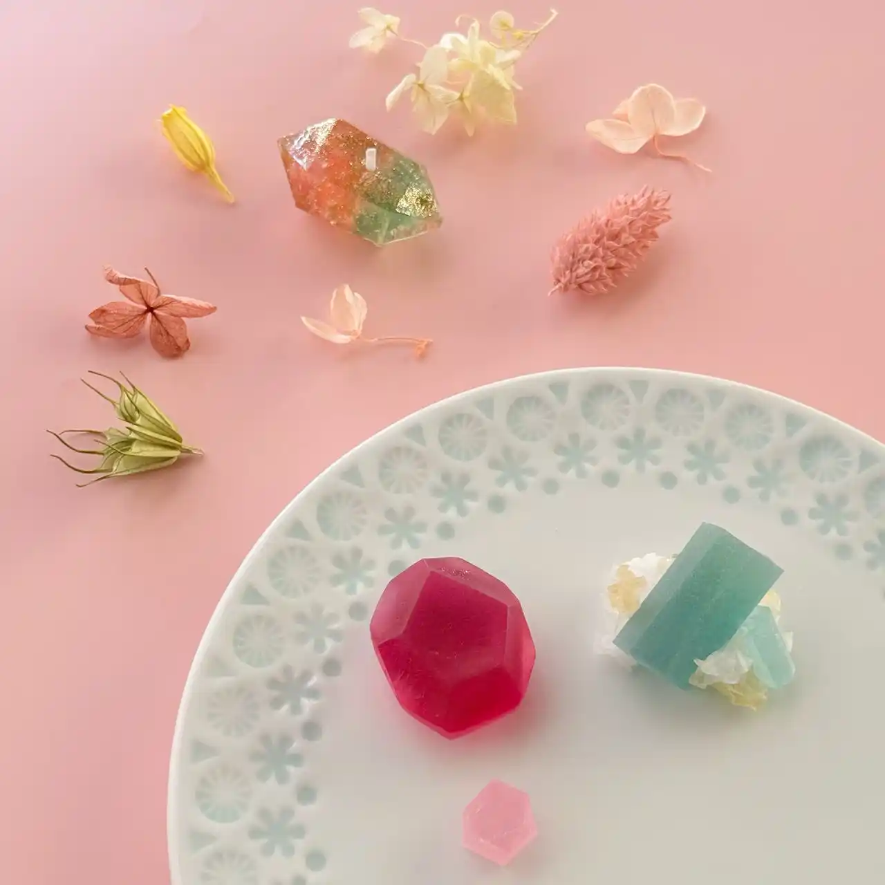 | 母の日にまだ間に合う!きらめく琥珀糖と鉱物キャンドルの特別なひと箱 |