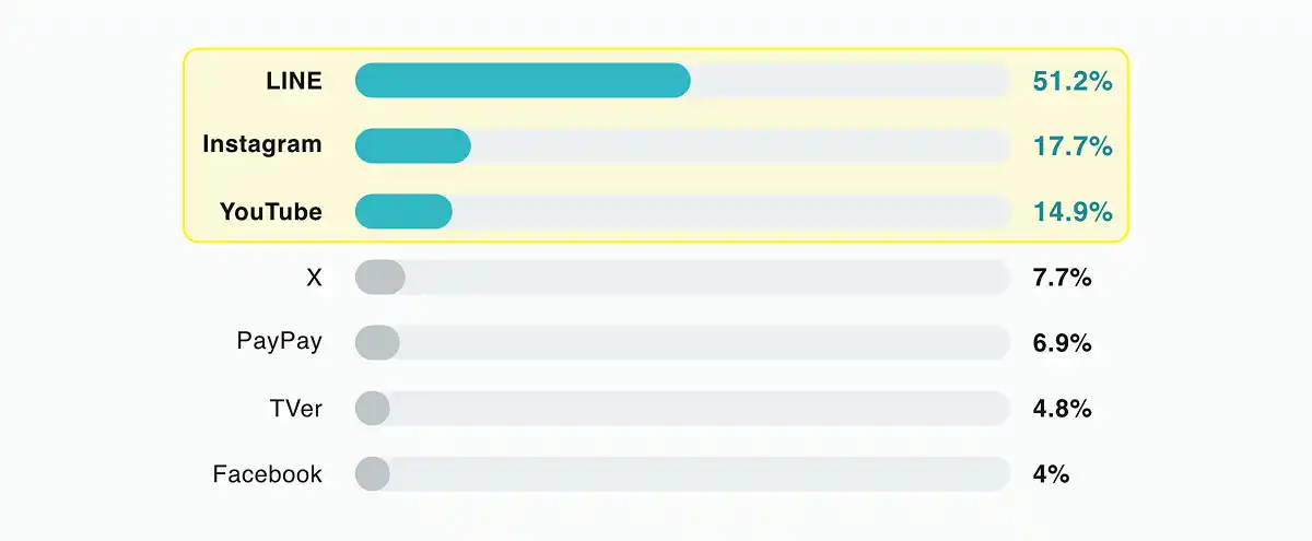 目的があれば「AI」すら使いこなす 「LINE」の日常利用が全世代で定着しているほか、自由回答では「推し活」「海外旅行」などの熱狂的な目的のために、「ChatGPT」や「Gemini AI」などの最新技術を使いこなす層の存在が確認された。 |