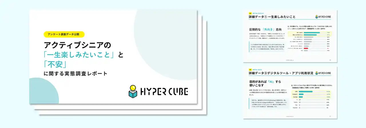 株式会社HYPER CUBE(本社:東京都港区、代表取締役:大林謙)は、アクティブシニア層(有効回答数:248名、中心層:50代~70代)を対象に、「一生楽しみたいこと」に関するアンケート調査を実施しました。 |