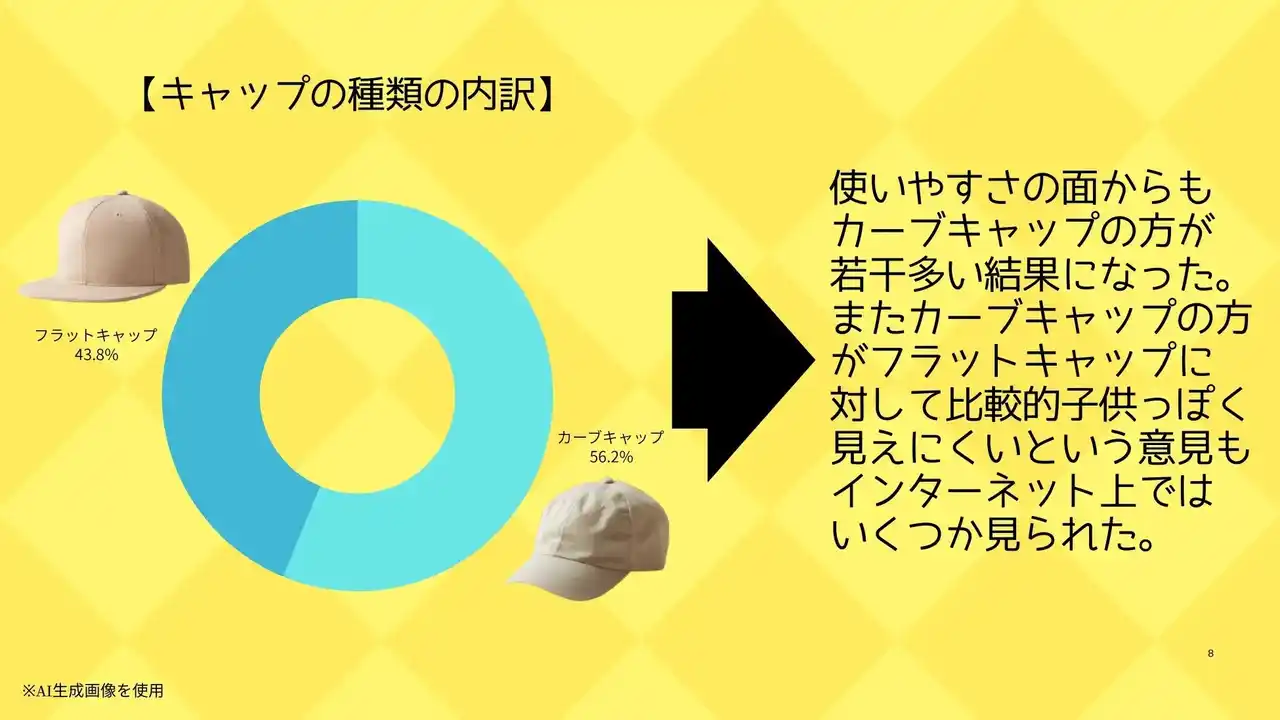 フラットキャップとカーブキャップの愛用者それぞれの属性の違いも伺える、とても良いリサーチだったのではないでしょうか。 |