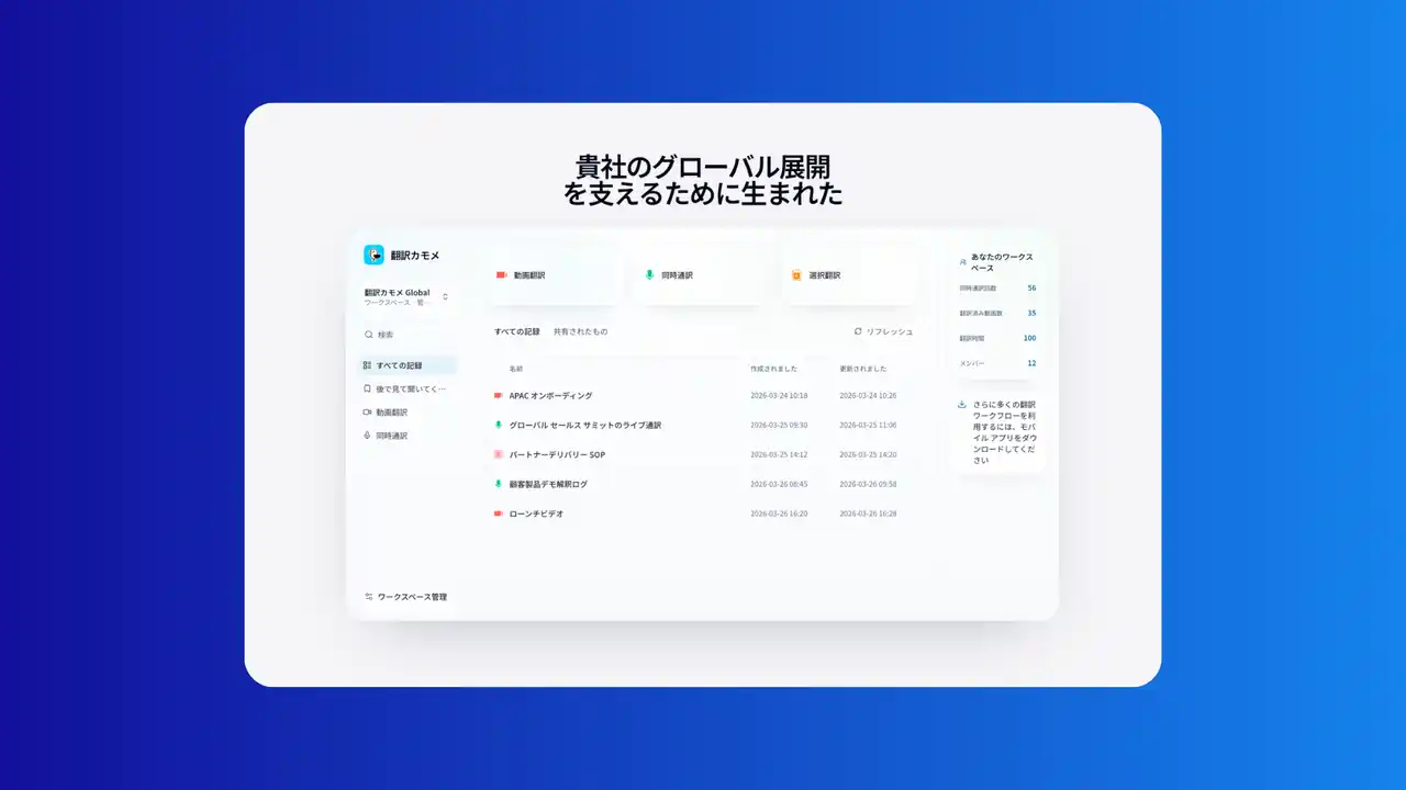 言語の壁を解消することで、企業のグローバルビジネスの拡大を加速させることを目指しています。 |