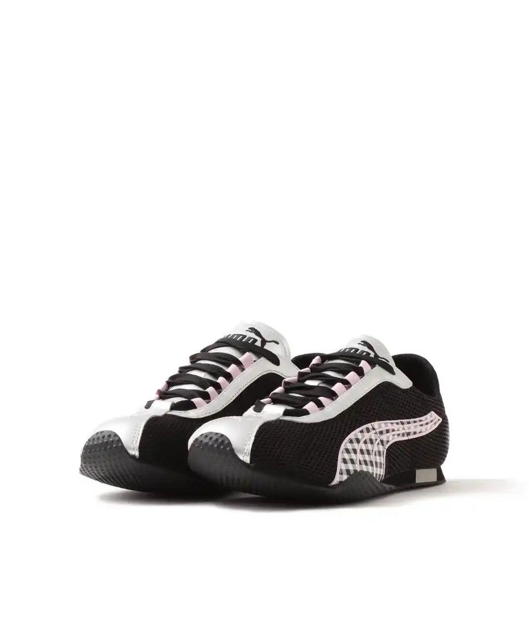 今作は、「atmos pink」が掲げるコンセプト[Pink’s Street]を意識し、”H-STREET”のクラシックなランニングスパイクのデザインをベースに、レディライクなギンガムチェックを随所に取り入れることで、ピクニックに出かけたくなるような、甘辛なムードに仕上がりました。 |