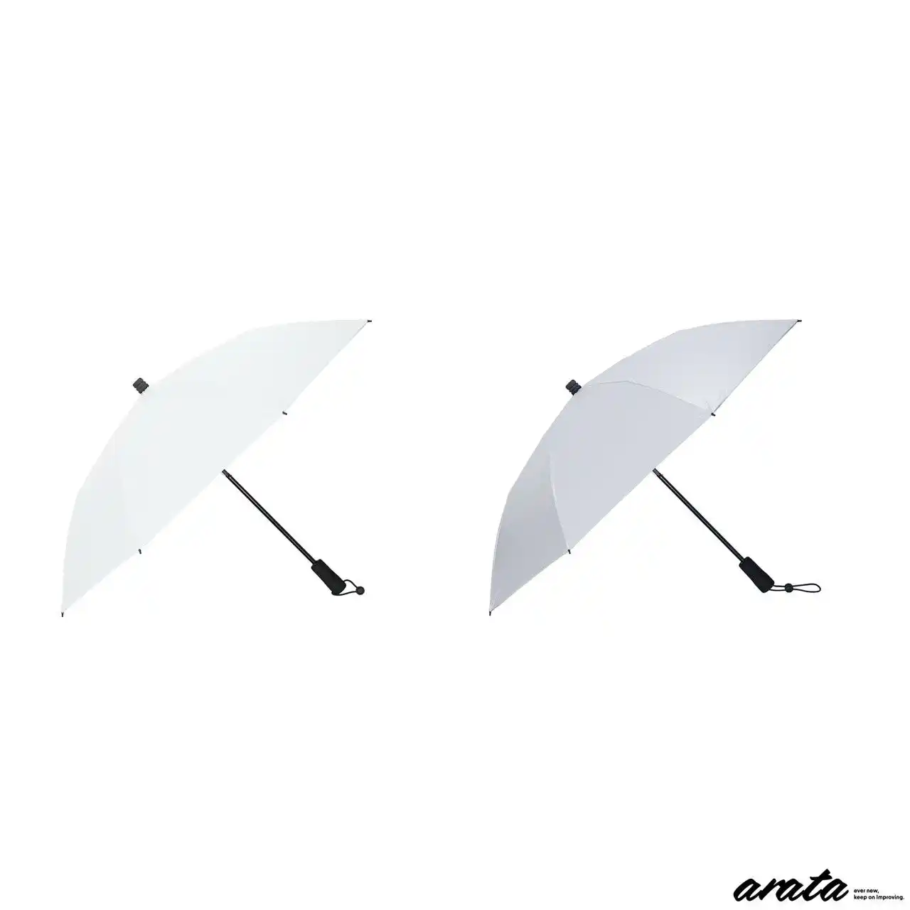 軽量さと強度のバランスに優れる生地を使用し、生地の裏側にはリップストップファブリックとの相性が良い完全遮光のブラックコーティングが施されており、紫外線や熱線を100%カットしつつ軽量に仕上げた晴雨兼用傘です。 |