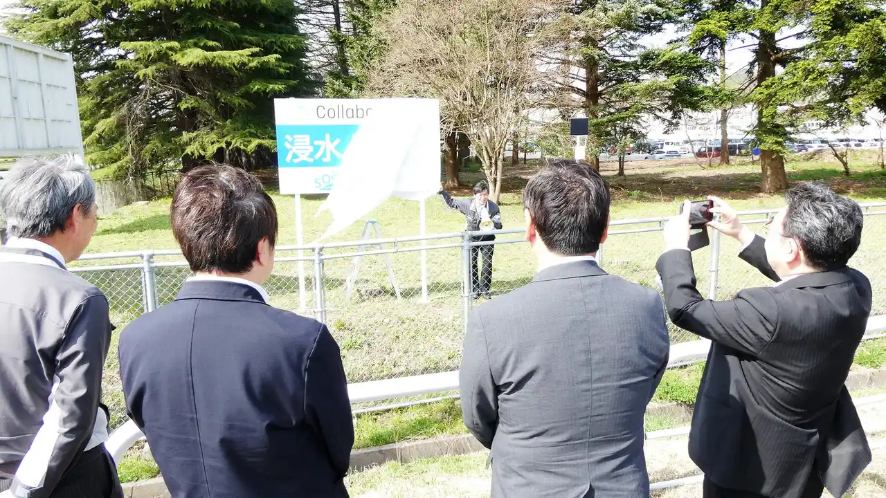 ワンコイン浸水センサ実証実験を視察する様子 |
