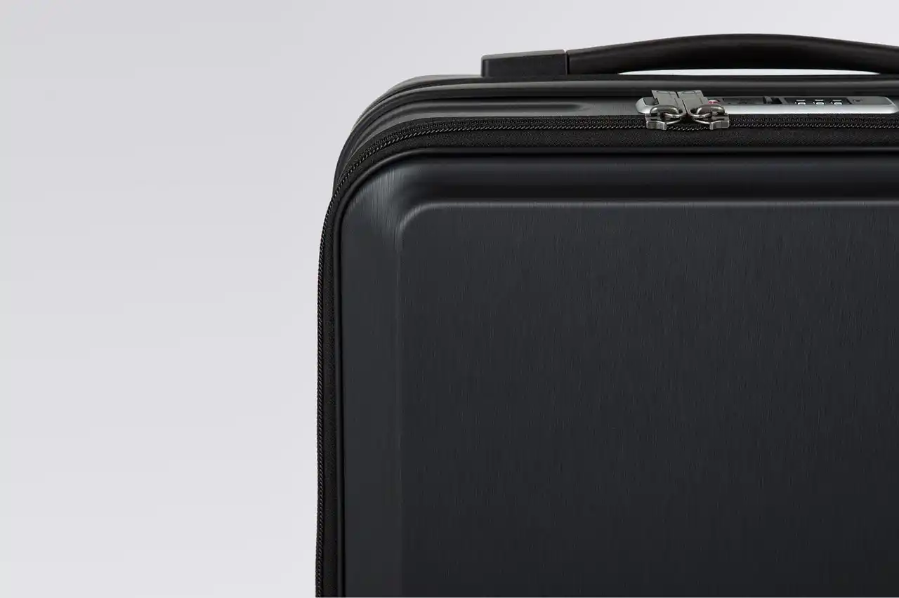 金属調のボディシェルがシャープで洗練された印象を与え、旅行はもちろんビジネスシーンにも馴染む上質な佇まいに仕上げました。 |