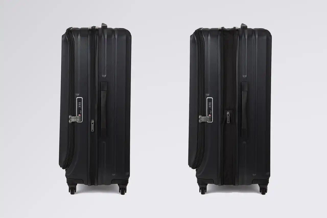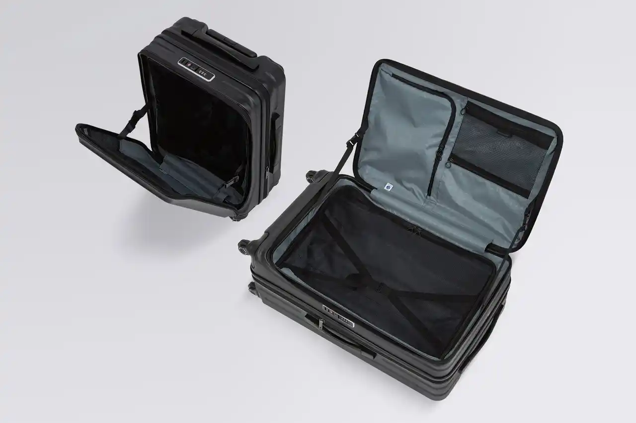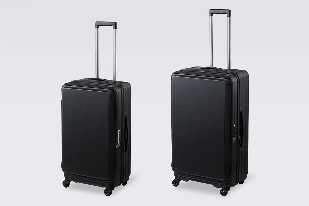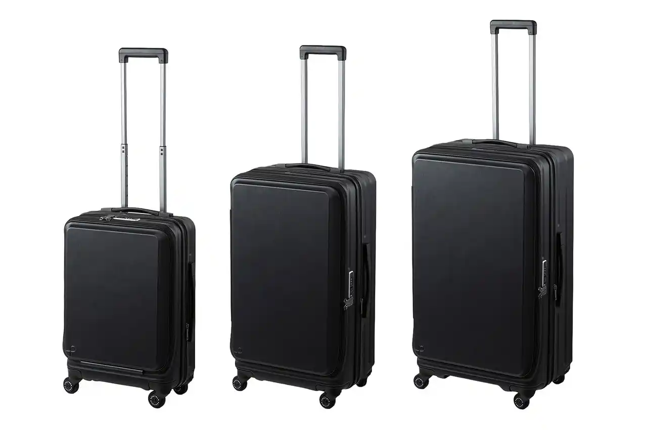 機内持込サイズは立てたまま出し入れできる「縦開き」、預け入れサイズは省スペースで開閉できる「横開き」仕様で、狭い空間でも快適に使えます。 |