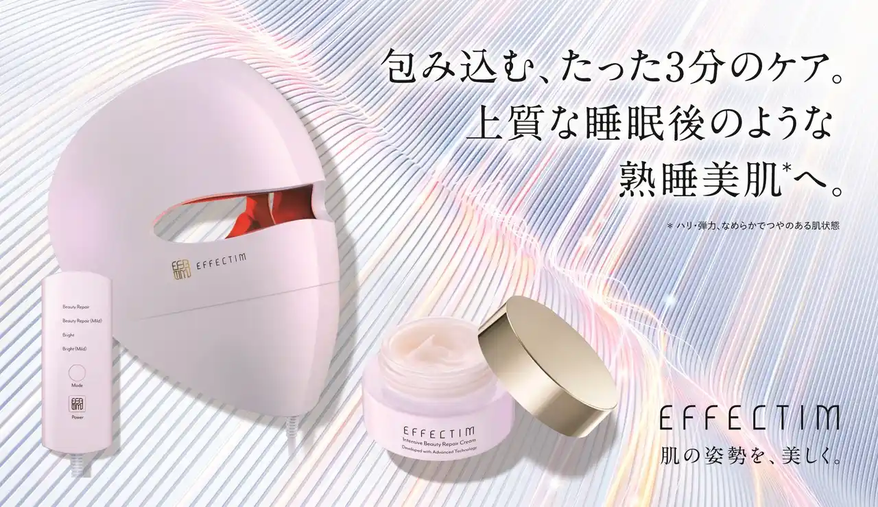 先端皮膚科学研究に基づき開発された、エイジングケア※1ブランド「エフェクティム」から、『インテンシブ ビューティー リペア マスク(美顔器)【数量限定品】』と『インテンシブ ビューティー リペア クリーム』を2026年6月1日より、全国の化粧品専門店(一部店舗除く)を中心に発売します。 |