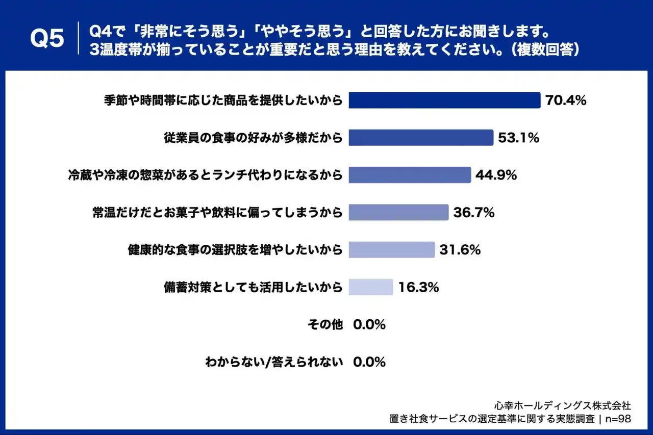 「Q5. Q4で「非常にそう思う」「ややそう思う」と回答した方にお聞きします。3温度帯が揃っていることが重要だと思う理由を教えてください。(複数回答)」