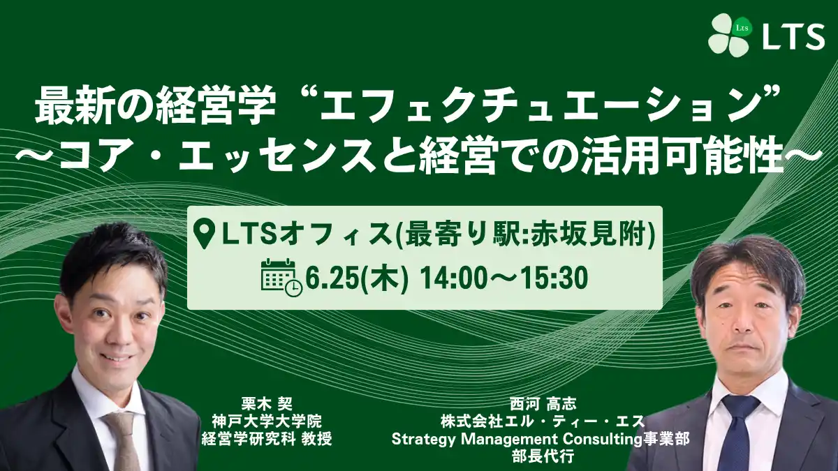 【エル・ティー・エス】 LTS主催セミナー「最新の経営学“エフェクチュエーション” ~コア・エッセンスと経営での活用可能性~」をリアル開催します