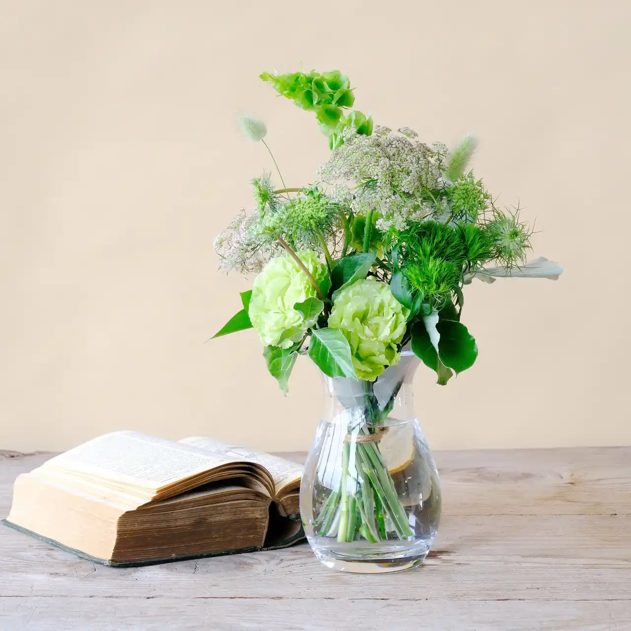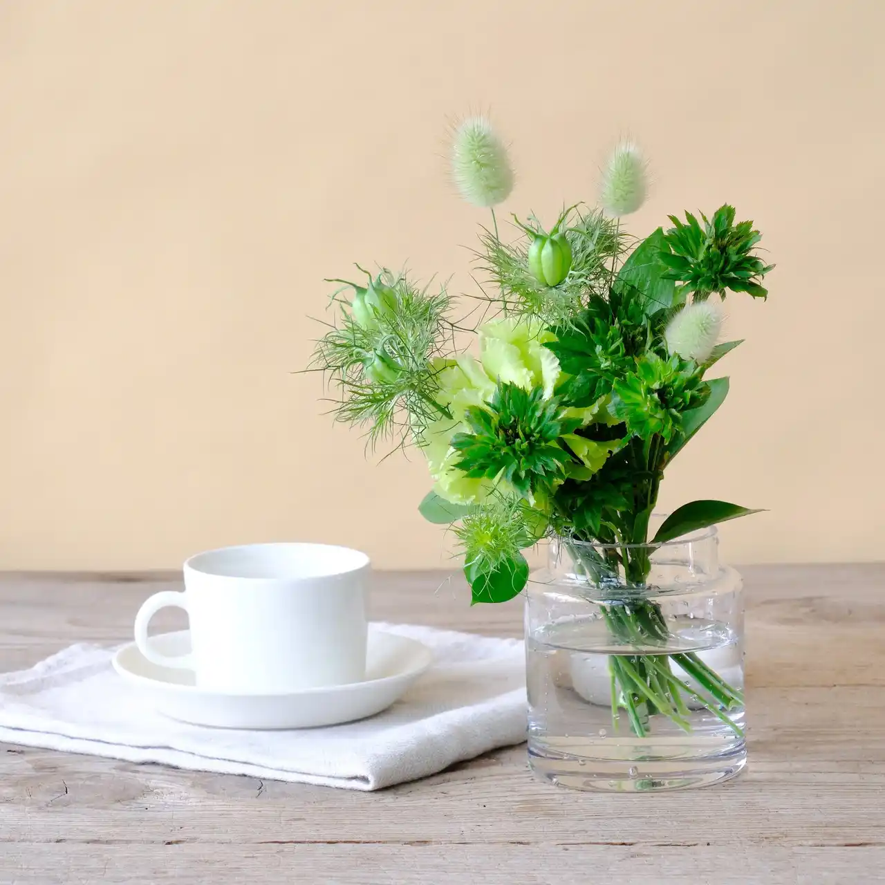 新緑の絶景を求めて自然に足を運ぶのも、この時季ならではの楽しみのひとつですが、暮らしの中に「新緑色の花々」を取り入れることで、日常の中でも季節を感じることができます。 |