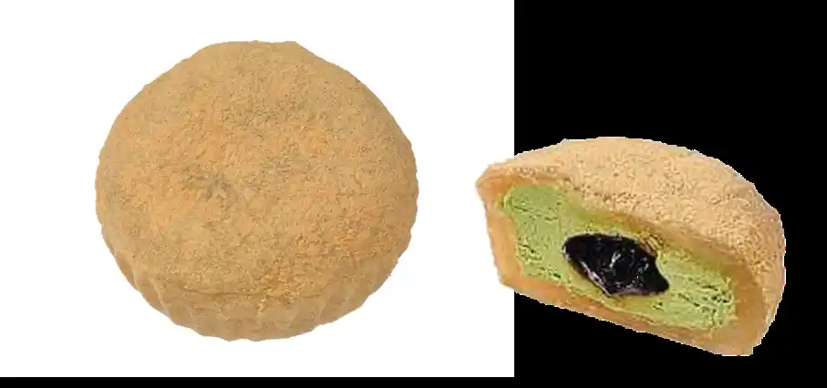 きなこの香ばしい風味の中から、ほろ苦くミルキーな抹茶クリームがあふれて調和し、コク深い黒蜜の余韻が残る味わいです。 |
