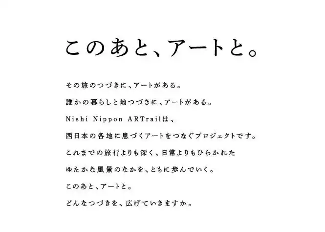 JR大阪駅直結のファッションビル「ルクア大阪」等を運営するJR西日本SC開発株式会社(大阪市北区梅田/代表取締役社長:竹中 靖)は、西日本エリアの芸術祭やデザインイベントをつなぎ、アートを通して地域の魅力を再発見するプロジェクト「Nishi Nippon ARTrail(ニシニッポン・アートレイル)」を展開しています。 |