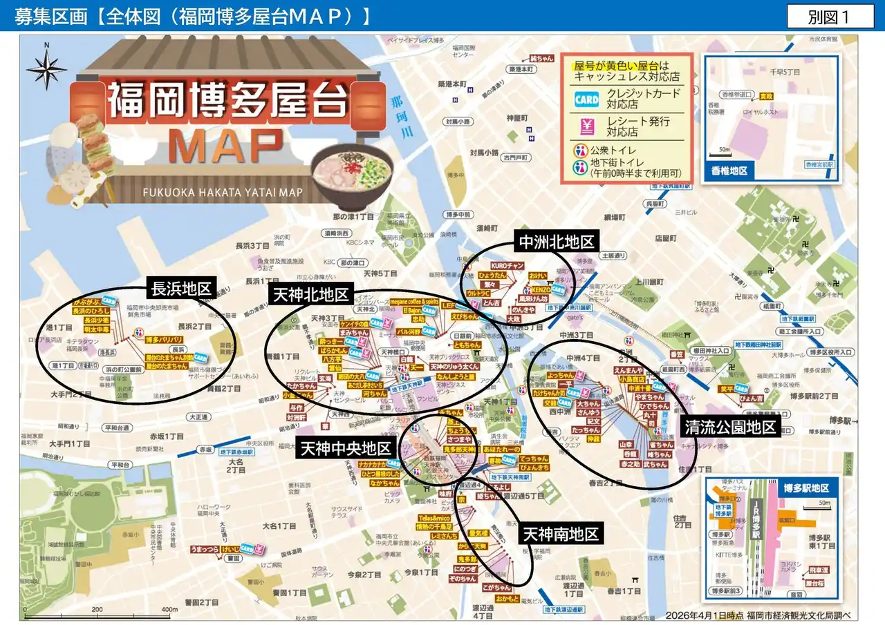 | 福岡市では、屋台営業者公募を実施します。応募期間は2026年6月8日(月)までです。 |