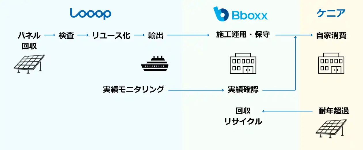 「エネルギーフリー社会の実現」をビジョンに掲げ、エネルギーと暮らしの新しいあり方を追求する株式会社Looop(本社:東京都台東区、代表取締役社長 CEO:中村創一郎、以下「Looop」)は、アフリカでエネルギー事業を展開するBboxx Kenya Ltd(本社:ケニア、以下「Bboxxケニア社」)と、ケニアの電気が届かない地域(以下 未電化地域)における太陽光パネルリユース(再利用)の実証実験に向けた基本合意書(MOU)を締結しました。本取り組みは、国内で役目を終えた太陽光パネルが急増する「2030年問題」への有効な解決策を提示するとともに、使われなくなった資源を新たな価値へと転換し、未電化地域にクリーンエネルギーを広げていく挑戦です。 |