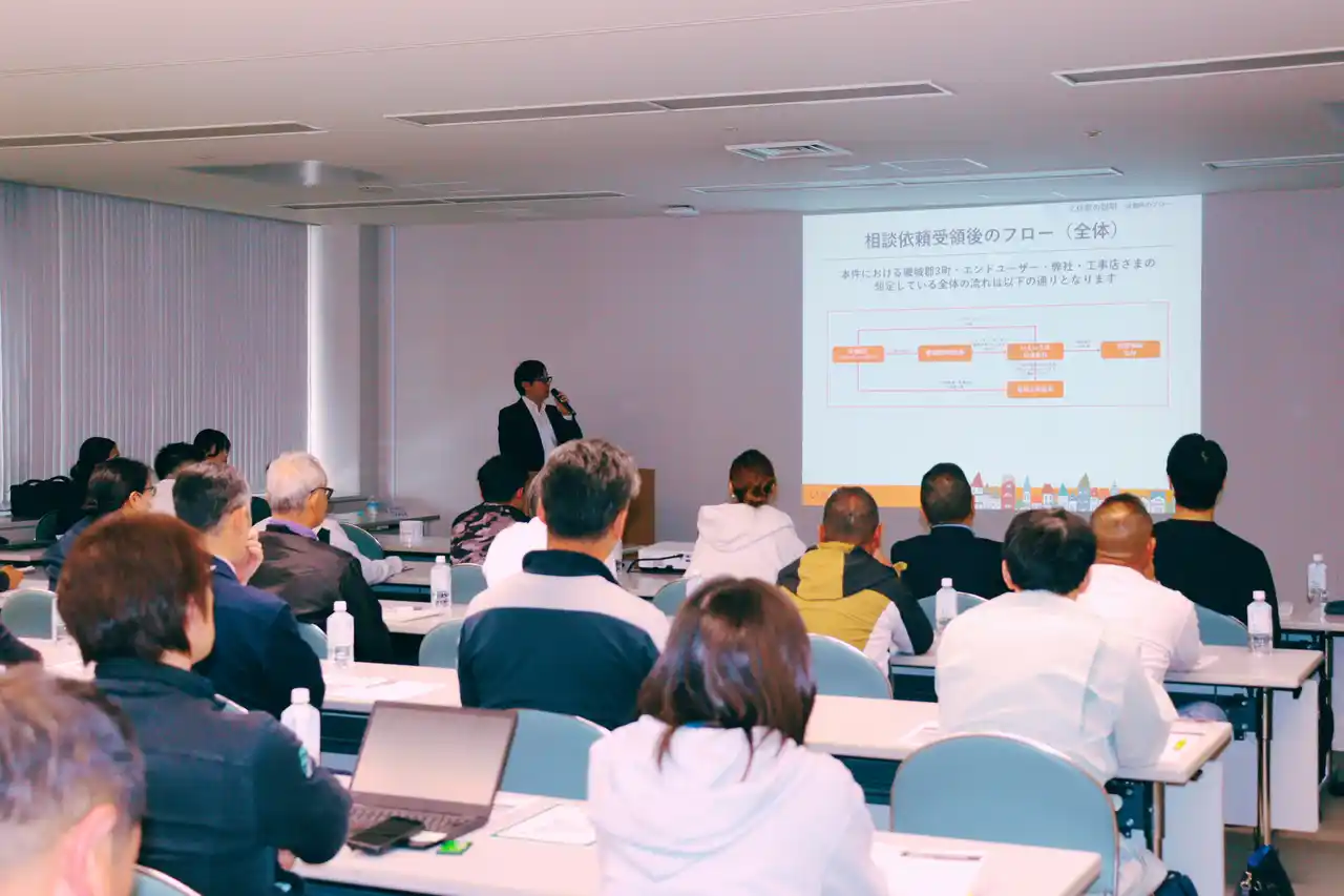また、本ネットワークへ参加いただく工事店については、常時待機の義務や強制的な出動要請は無く、自社の既存顧客や通常業務を犠牲にせず、「対応可能な時に、可能な範囲で」ご協力いただくことで、地元企業の皆様に無理なく地域貢献していただく仕組みをお伝えしました。 |