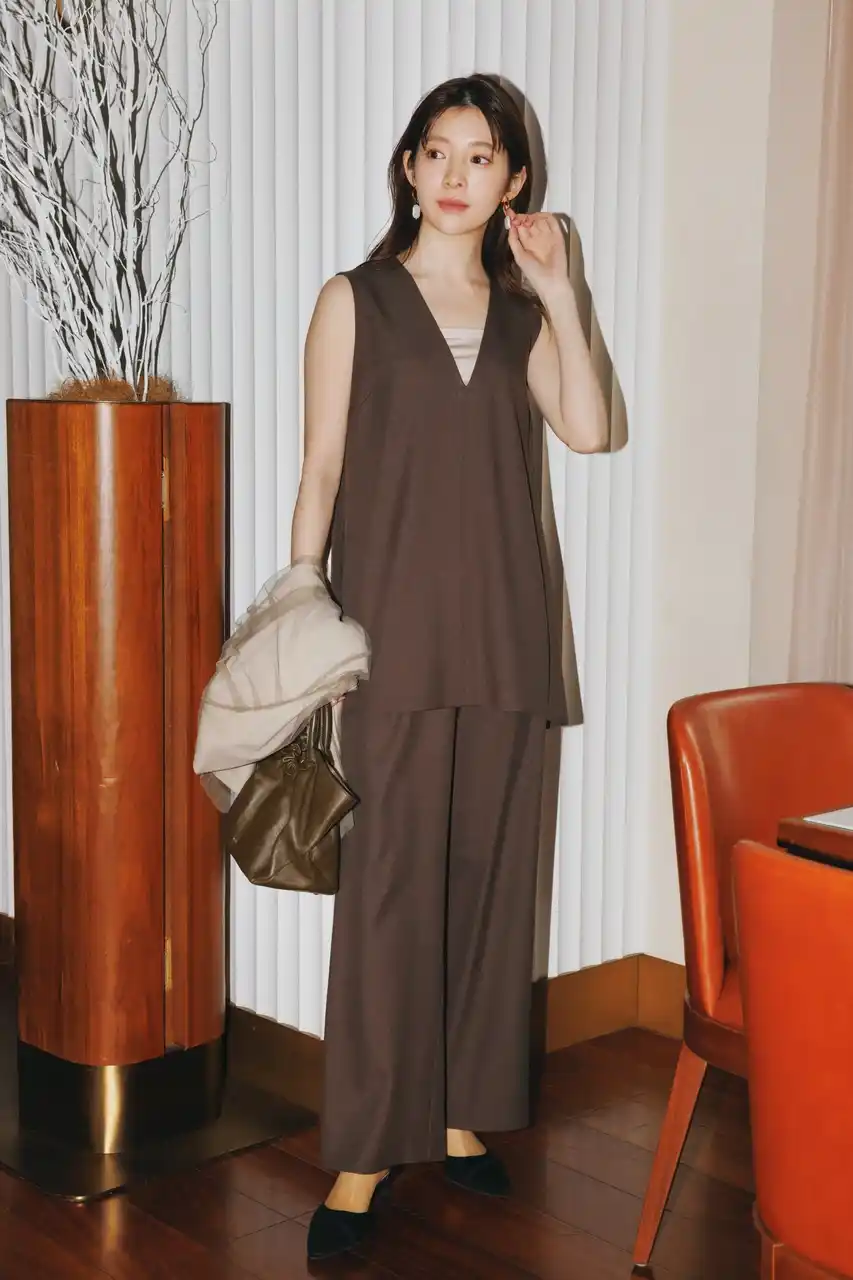 リラックスムード漂うセットアップは、女子会にもぴったり。 |