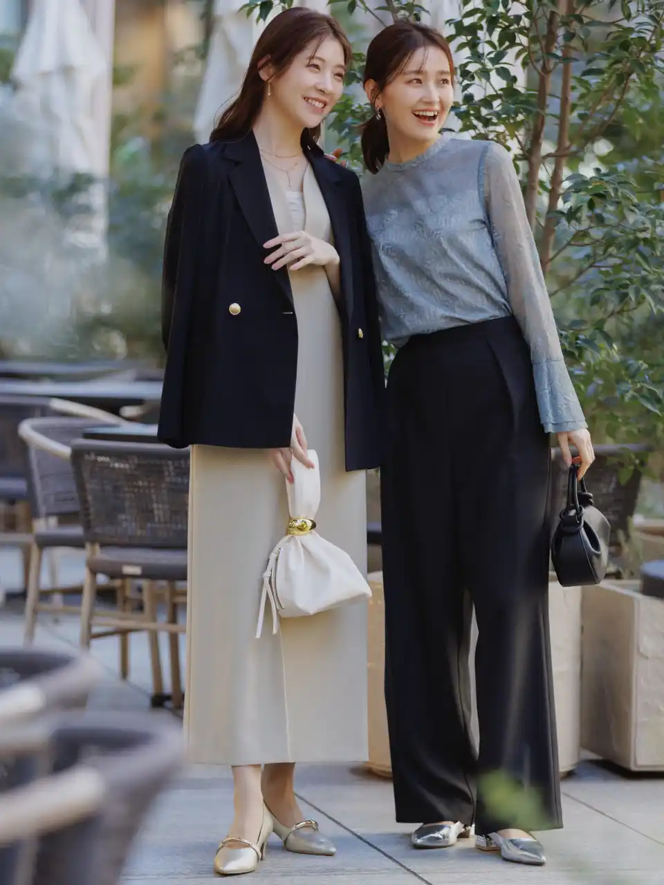 特別なオケージョンからカクテルシーンまで着用できる万能なコーディネートです。 |