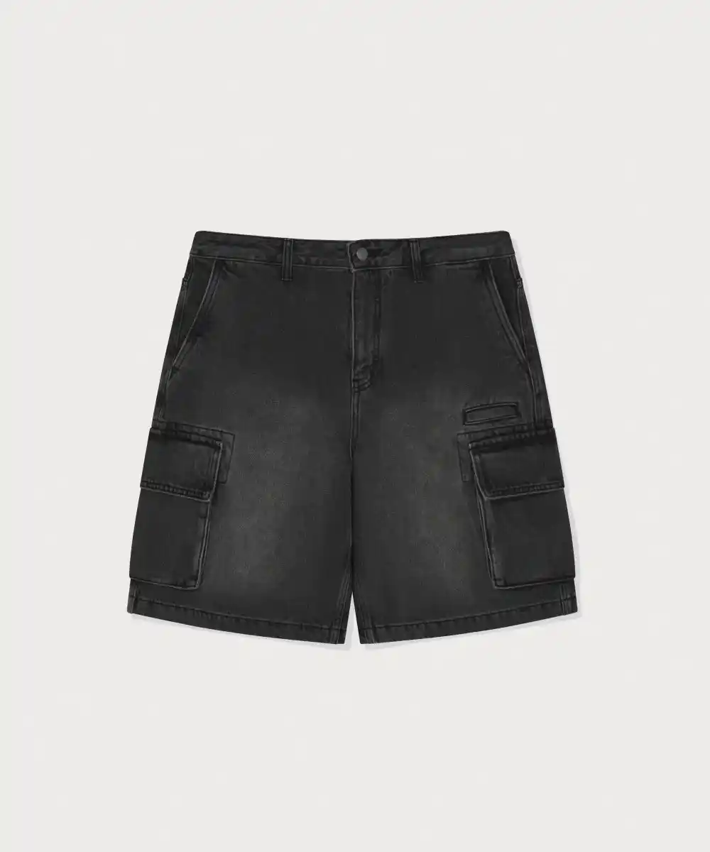 RING-SPUN WIDE CARGO DENIM SHORTS |