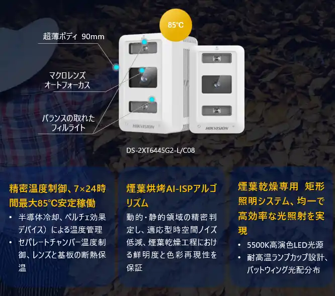 煙葉烘烤AI-ISPアルゴリズム:動的・静的領域の精密判定し、適応型時空間ノイズ低減、煙葉乾燥工程における鮮明度と色彩再現性を保証。 |