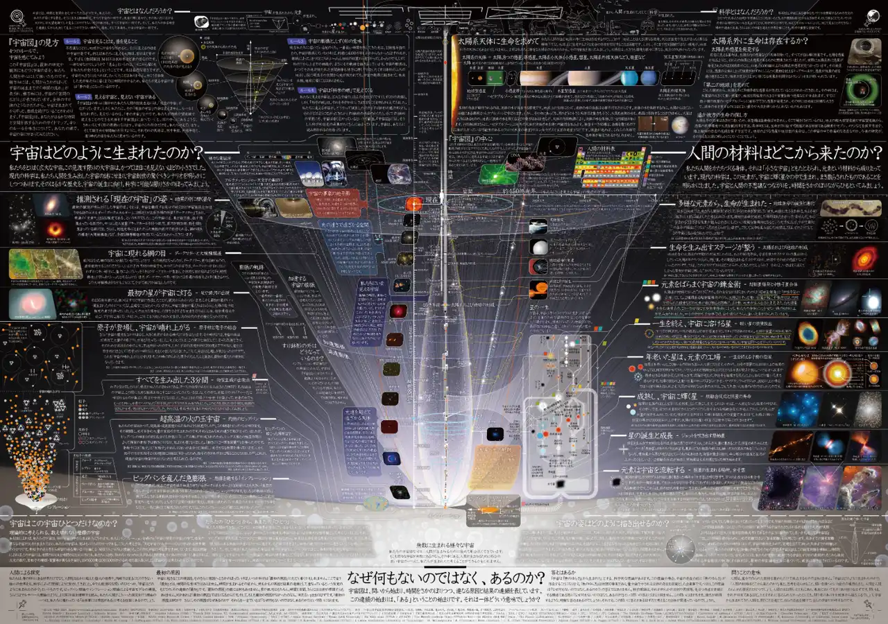 | 「デジタル宇宙図」は、天文学普及プロジェクト「天プラ」が、令和7年度子どもゆめ基金の助成を受けて制作したコンテンツです。自然科学研究機構 国立天文台が企画し、「一家に1枚 宇宙図製作委員会」によって制作された「宇宙図2024」をデジタル化したもので、宇宙図内を自由に移動しながら、興味・関心に応じて宇宙について学ぶことができます。 | |||