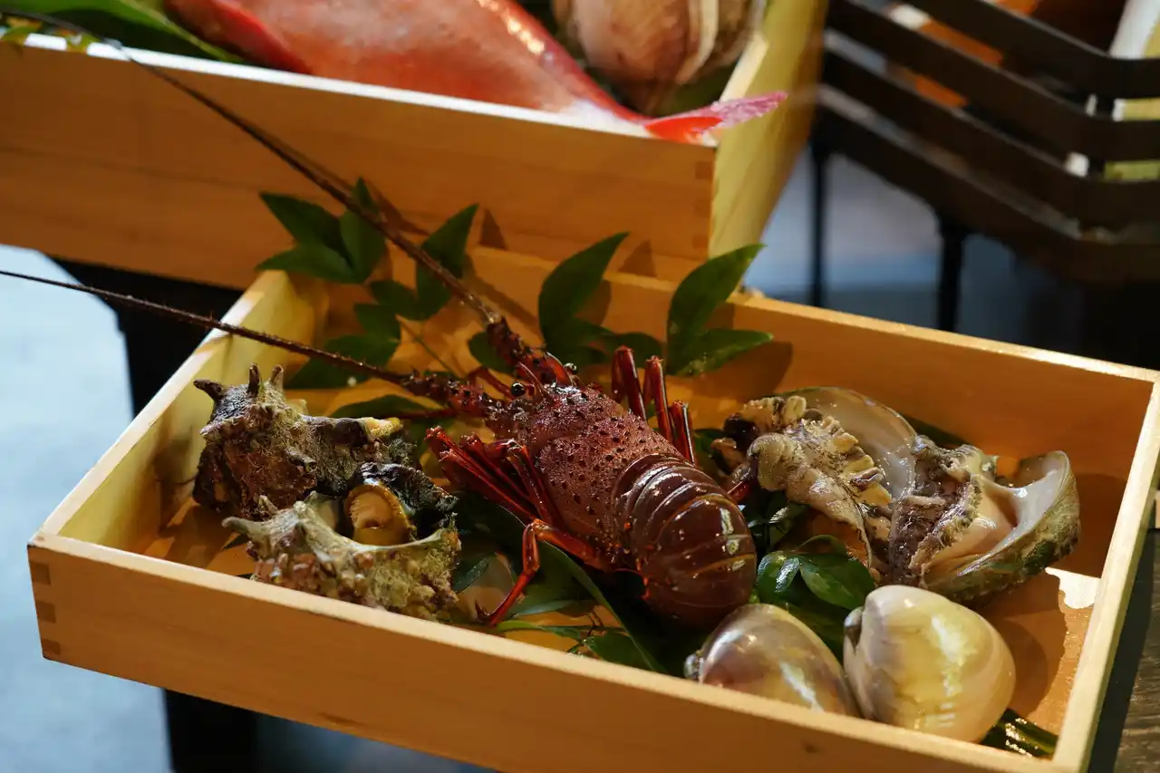 地元漁港から届く魚介、旬の野菜、厳選された肉類――その日の気分に合わせて、贅沢な食材を自由にセレクト。 |