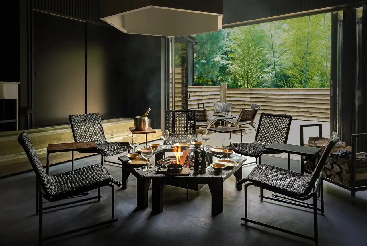 3.各棟専用の BBQ スペースに焚き火台を設置 |