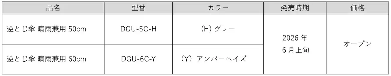 | 株式会社電響社(大阪市浪速区、代表取締役社⾧:山下 俊治)は、「逆とじ傘 晴雨兼用」を2026年6月上旬より全国の小売各店および主要ECサイトにて発売いたします。 | ||||||||||||||