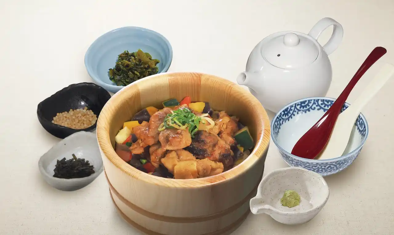 | 『おひつごはん四六時中』では、素材や旬の味わいを大切にしながら、自慢の「特製だし」と、海鮮・肉・野菜など多彩な食材を組み合わせ、締めに“だし”をかけて愉しむ独自の食事スタイルをご提案しております。 | ||||||||||||