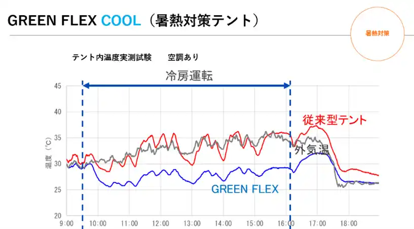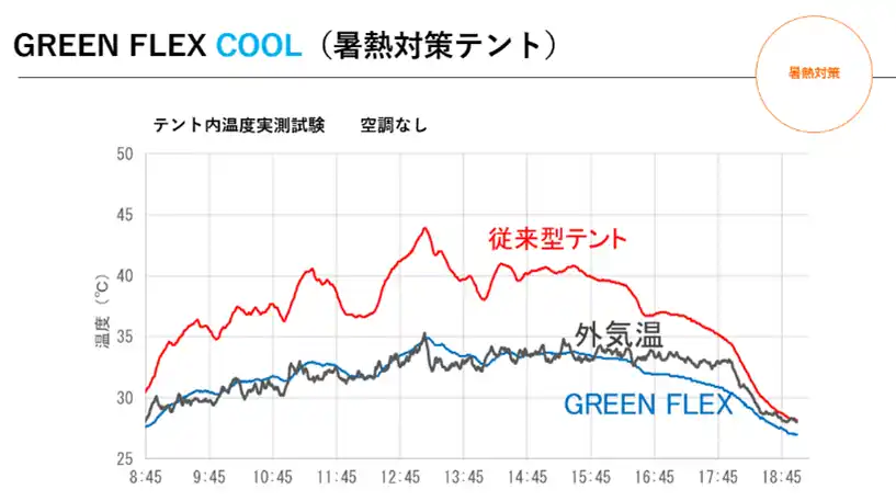 次世代型テント「GREEN FLEX」の主な特長 |