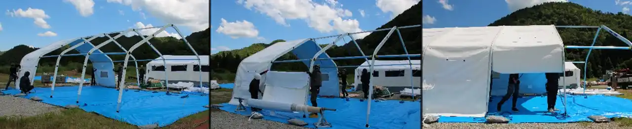 次世代型テント「GREEN FLEX」組み立ての様子 |