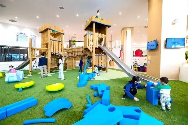いつでも思いきり遊べる 約1,900平方メートル に広がる屋内外のあそび場! 赤ちゃんから小学生まで発達段階に合わせて楽しめる多様なあそびを用意。雨や雪の日も、家族で楽しく過ごせます。 |