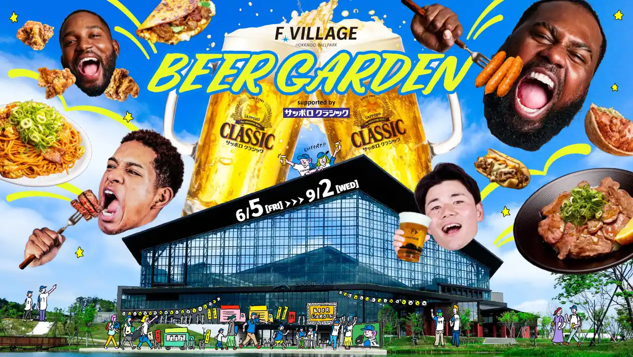 昨年開催したビアガーデンをさらにバージョンアップし、今年は3か月間開催! 普段はなかなか味わえない北海道初出店の絶品グルメが、期間を3つに分けてFビレッジへ集結します。約200席の開放的なテラス席で、試合日・試合がない日を問わず、多くの方にご利用いただけるビアガーデンを展開します。 ご提供するビールは、北海道が誇るサッポロ クラシック。 ビールとともに楽しめる多彩なグルメをはじめ、開放的な空間で、大人から子どもまで家族みんなで非日常のひと時をお楽しみください! |