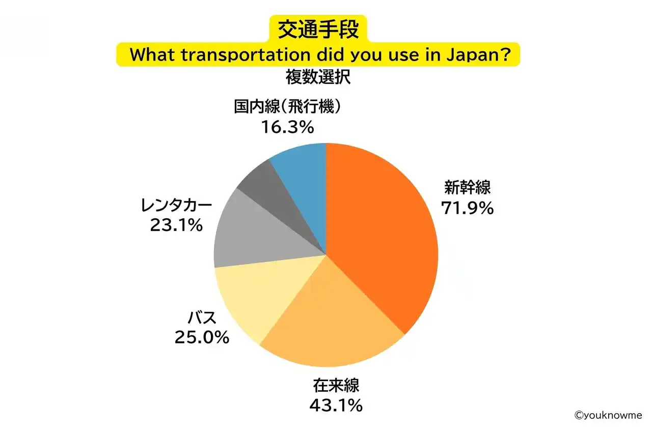 新幹線を利用してウィンタースポーツの目的地へ移動している人は、全体の約7割。 |