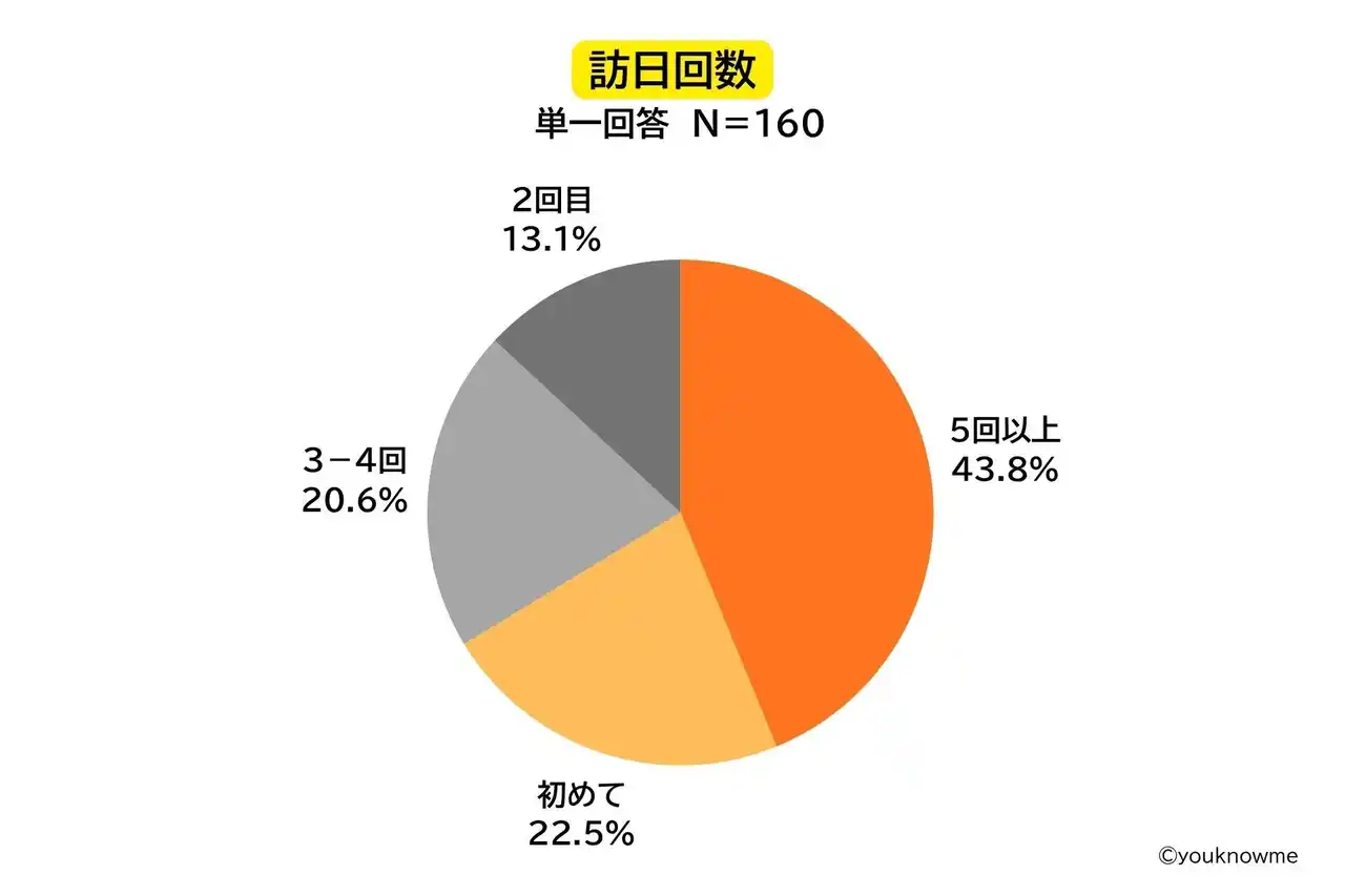 調査の結果、ウィンタースポーツ目的で新宿に来ている外国人観光客は、20代(33.8%)と30代(38.8%)合わせて約7割と若年層が多く、訪日回数を問う設問では、「5回以上(43.8%)」が最も多く、「3-4回(20.6%)」、「2回目(13.1%)」と2回以上の訪日の人が約8割と、リピーターが多いことが分かりました。 |