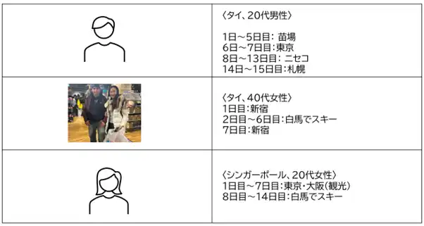 今回の調査では、新宿エリアとウィンタースポーツ地を組み合わせた行程を取る旅行者が一定数存在することが明らかになりました。この動向を踏まえると、都市型店舗とスキー・スノーボード場が連携した相互プロモーションは、旅行者の移動導線上で効果的に接点を創出し、消費行動に直接働きかけられる施策となり得ます。 |