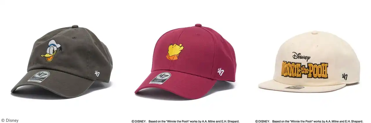 1947年に米国ボストンでスタートしたカジュアルライフスタイルブランドである’47(フォーティーセブン)は、2026年に展開するディズニーデザインコレクションより、「ミッキー&フレンズ」と「くまのプーさん」をデザインしたキャップを、公式オンラインストア、'47長野・沖縄をはじめ全国の’47取扱店舗にて5月より発売いたします。 |