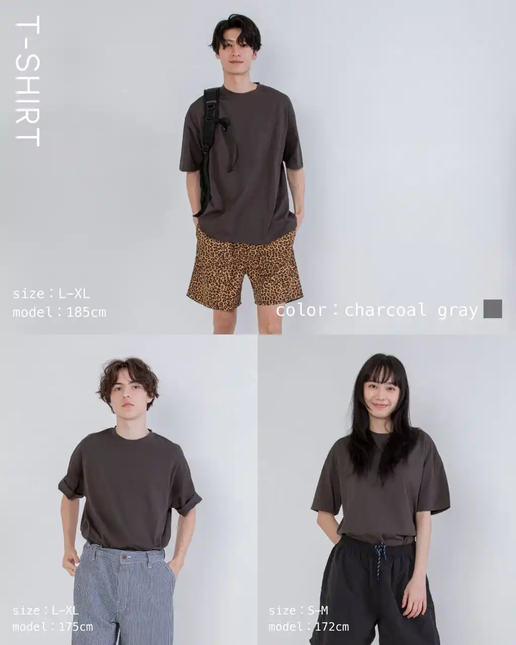 TシャツはFREAK’S STOREらしいゆったりシルエットで、どんなパンツにも合うチャコールグレーが登場。 |