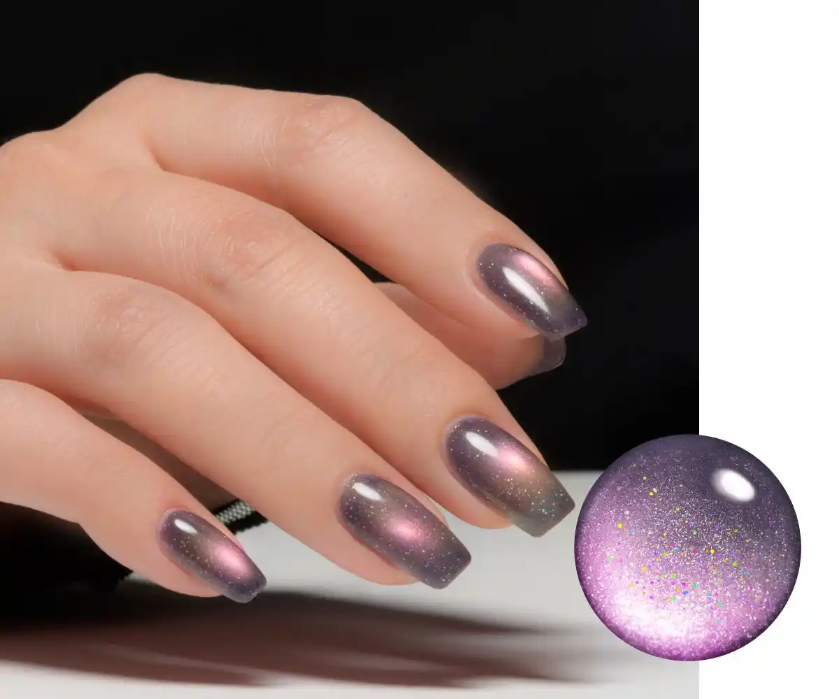 本コレクションでは、夏の夜空に広がる花火の一瞬の輝きと、その余韻が心に残り続ける美しさから着想を得た全8色を展開。マグネットネイルならではの奥行きのあるきらめきが、まるで夜空に輝く花火のように幻想的なニュアンスを演出します。指先に咲く、消えない花火で夏の思い出を鮮やかに彩ります。 |