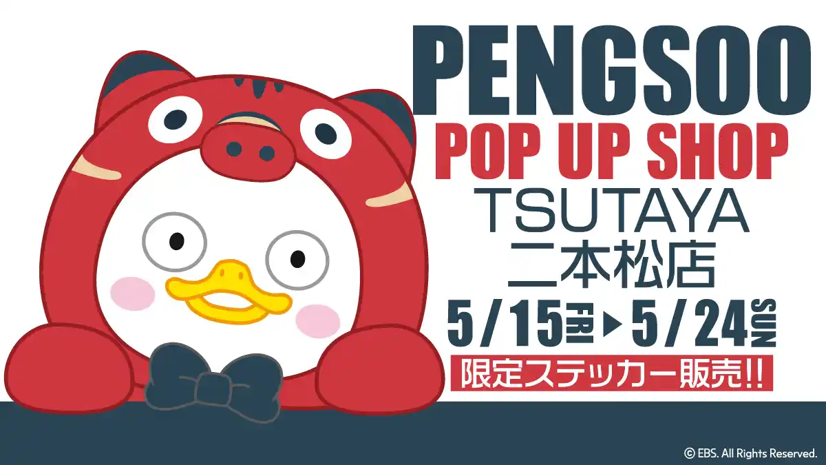 雑貨の企画・デザイン・製造を行う、株式会社ZEN(代表:山喜多 邦夫)は2026年4月29日(水)より株式会社MIDORIがFC展開するTSUTAYA 桑野店・二本松店にて韓国の人気クリエイターPENGSOOのポップアップストアを開催する。株式会社ZENは2023年より韓国EBS社とMDライセンス契約を締結し、日本国内でのPENGSOOビジネスを主導してきた。