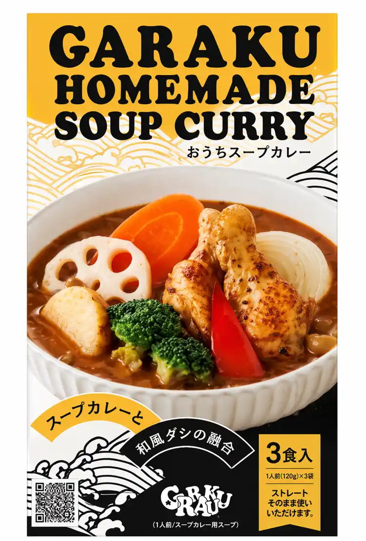 | 札幌で行列ができる店舗の味を、もっと多くの方に届けたいという想いから、この商品が生まれました。レトルトでは難しかった「自由に楽しめるスープカレー」を目指し、試行錯誤を重ねて開発しましした。自宅でも、外でも、GARAKUらしい一杯を楽しんでいいただけたら嬉しいです。 | ||||||||||||||