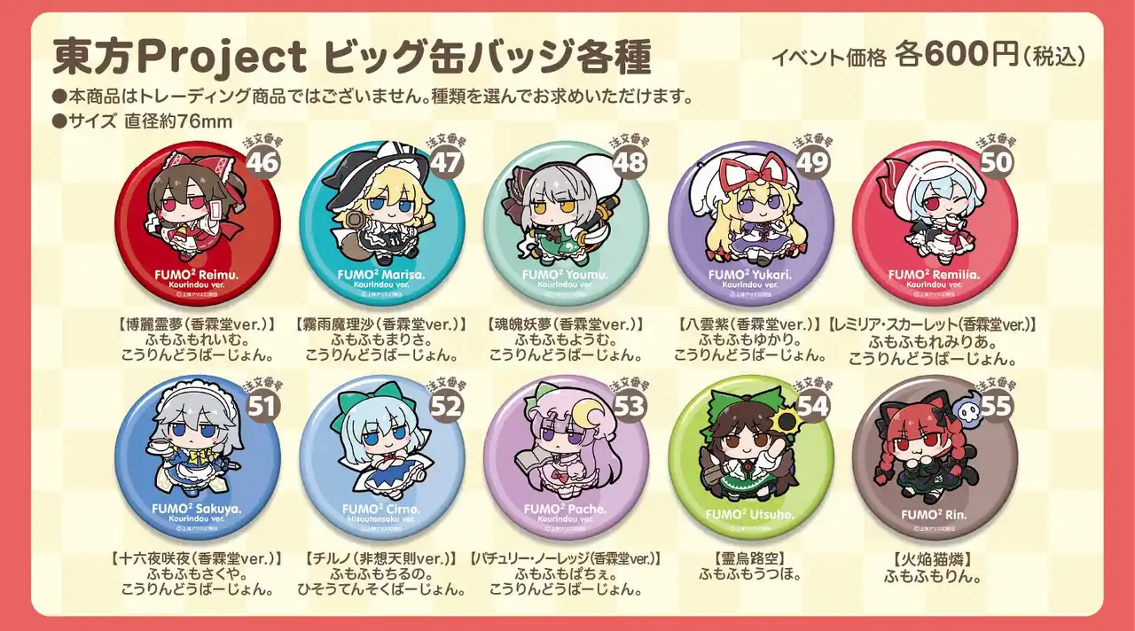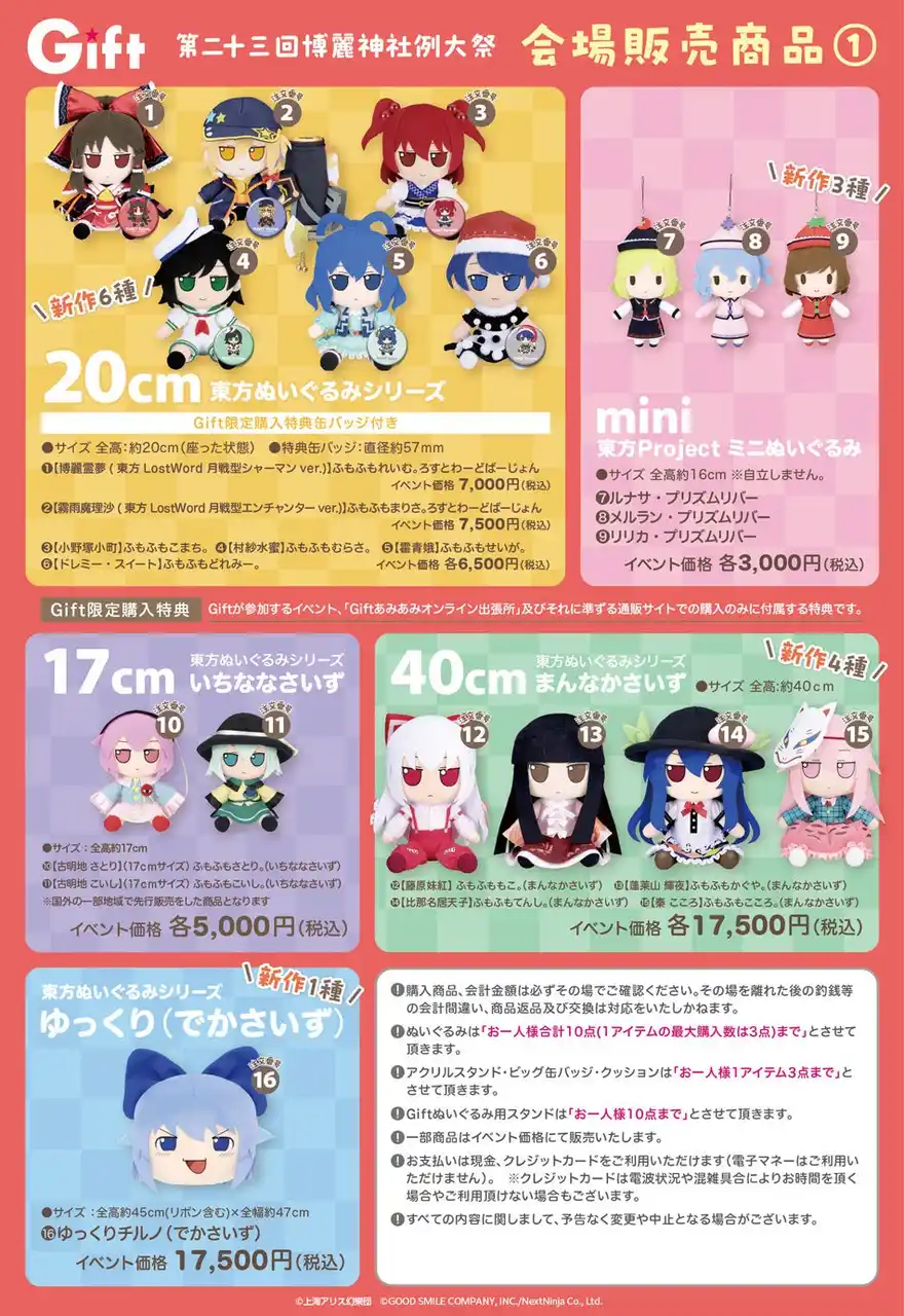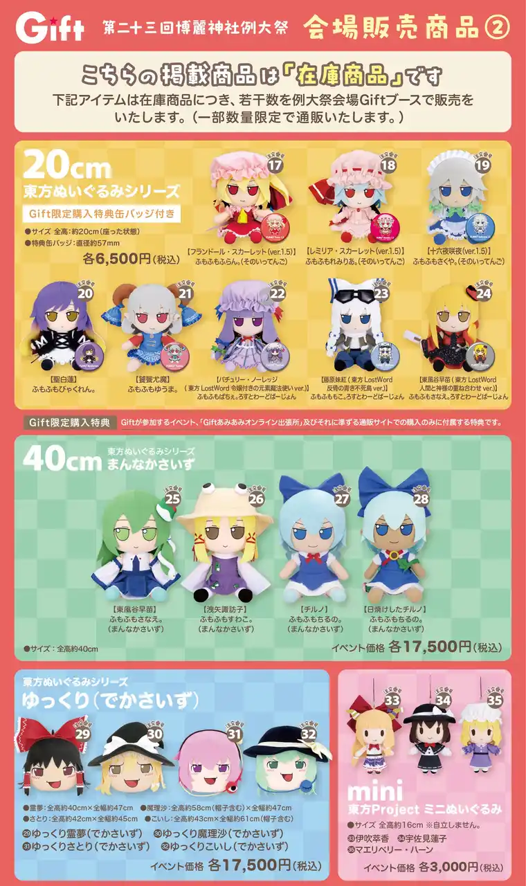 | ※制限数が、第二十三回博麗神社例大祭Giftブースの購入制限数と異なる場合がございます。 | |||||||||
