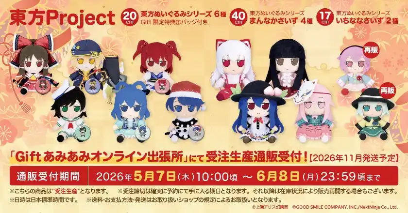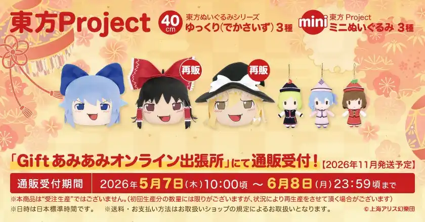 | ホビー通販大手の「あみあみ」(運営:大網株式会社、東京都文京区)は2026年5月4日(月・祝)に開催される『第二十三回博麗神社例大祭』に、「Gift&あみあみ」として出展いたします。 | |||||||||
