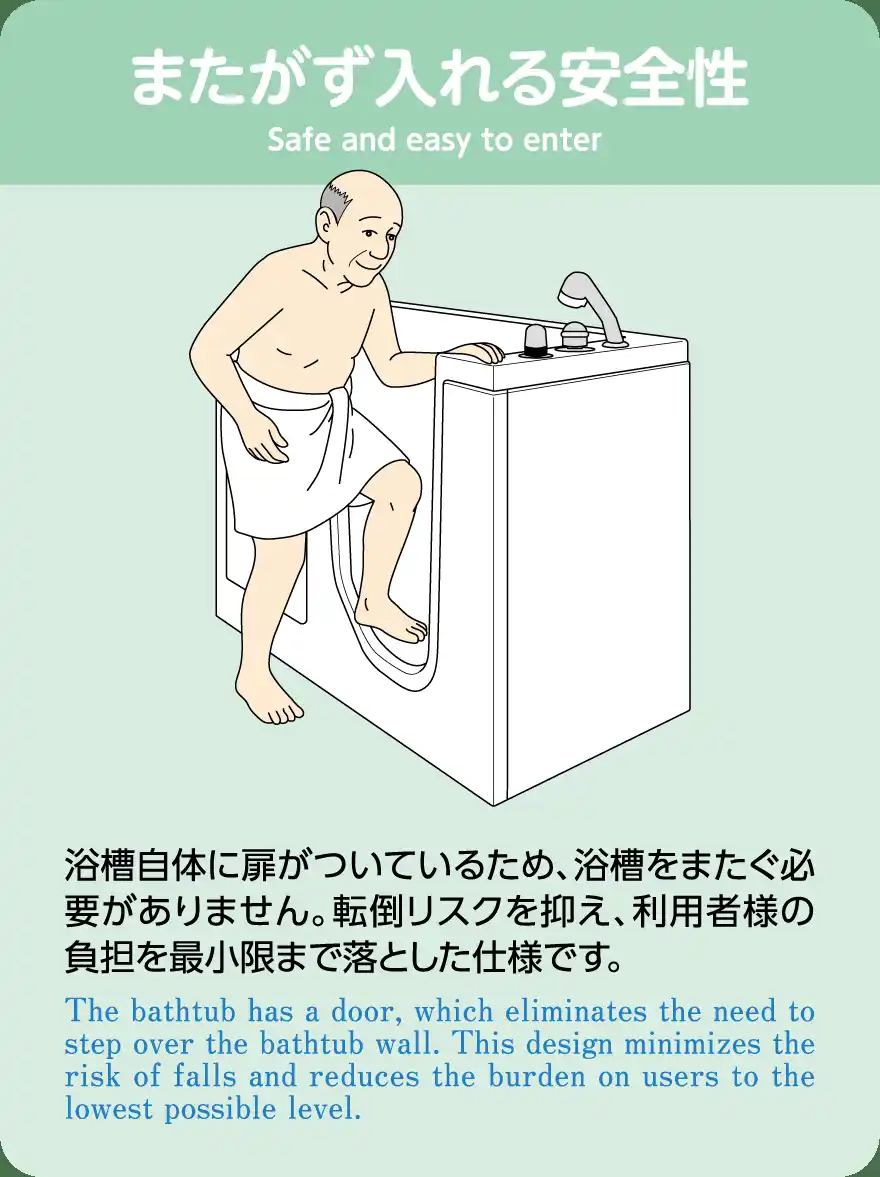・浴槽ドアの採用により、高齢者にとって危険な「またぐ」動作を完全に解消 |