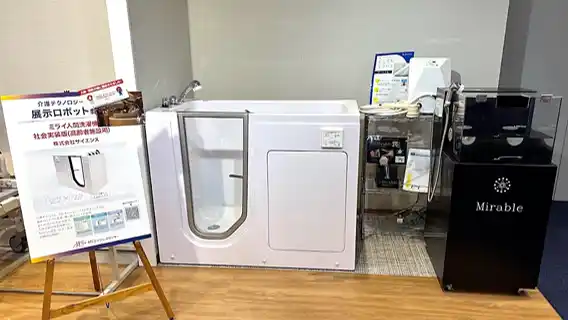 ファインバブル技術で社会課題の解決を目指す企業、株式会社サイエンス(本社:大阪府大阪市、代表取締役社長:水上 康洋、以下 当社)は、大阪・南港の複合商業施設 ATC(アジア太平洋トレードセンター)にある大阪府介護生産性向上支援センター(ATCエイジレスセンター内)にて、「ミラブル アシストバス」を展示いたします。万博で提示した未来の入浴体験を、介護・福祉領域での実用化を目指して進化させた本機は、「身体をゴシゴシこすらずに汚れを落とす」という革新的な入浴体験を通じて、超高齢社会における介護現場の深刻な課題-入浴介助の負担増大、転倒リスク、人手不足-の解決を目指します。 |