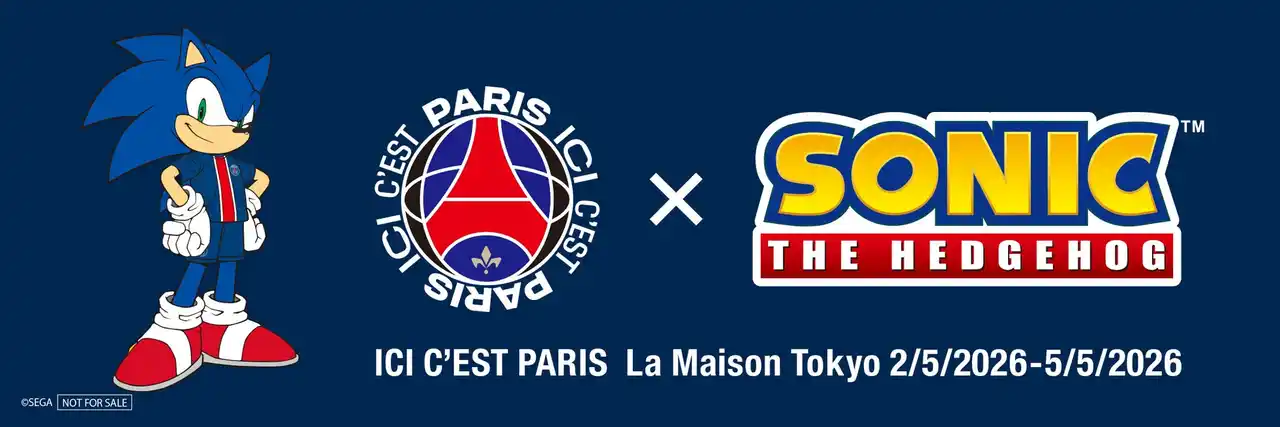 株式会社セガは、グローバルサッカークラブ「パリ・サン=ジェルマン(以下、PSG)」が2026年5月2日(土)より東京・渋谷にて開催する没入型ポップアップイベント「ICI C’EST PARIS La Maison Tokyo(イシ・セ・パリ・ラ・メゾン・トーキョー)」に、「ソニック・ザ・ヘッジホッグ」が参加することをお知らせいたします。 |